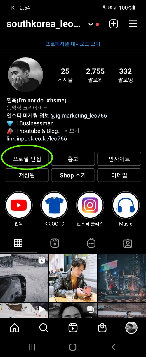 - 비즈니스 계정을 그대로 둔 채로 카테고리만 바꿔라. 블로그나 동영상 크리에이터, 커뮤니티 등 비즈니스와 상관이 없어 보이는 카테고리 명으로 바꿔라. 이렇게 하면 비즈니스 계정의 기능을 그대로 유지하면서 릴스 음악도 이용할 수 있다. 내 계정의 경우 비즈니스 계정인데 카테고리는 동영상 크리에이터로 돼 있어서 아무 문제 없이 릴스 음악 기능을 처음부터 사용할 수 있었다. [프로필 편집]을 누르면 아래쪽에 [카테고리]가 있다