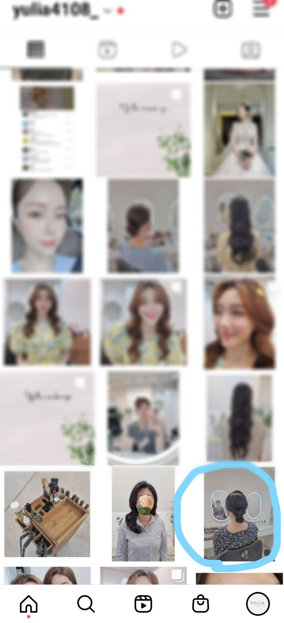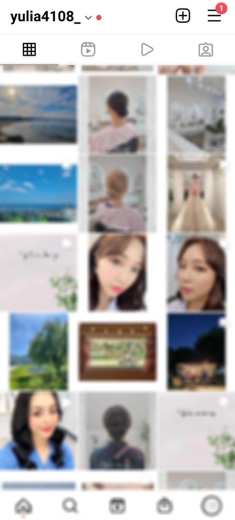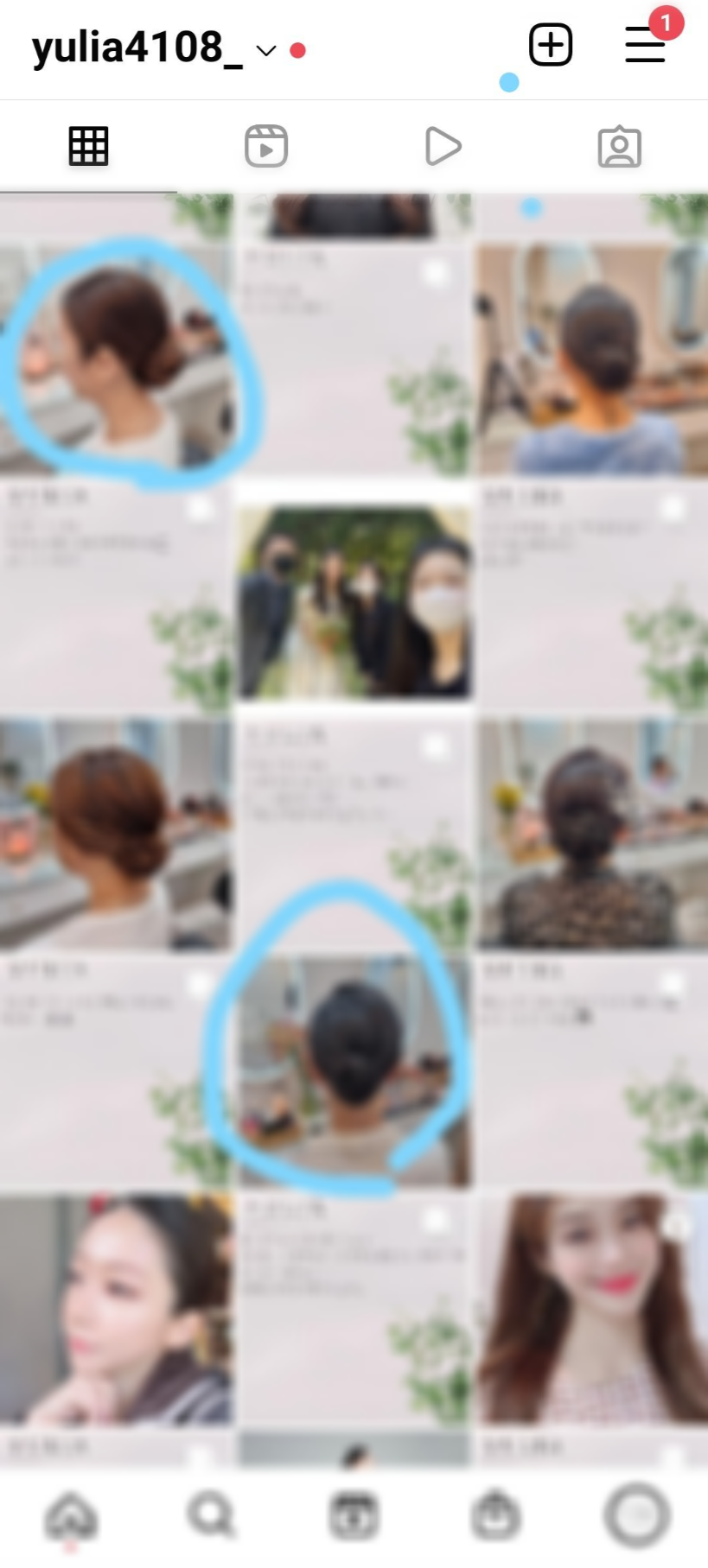 우선 위 이미지는 컨설팅을 받기 전 피드의 상태다. 난잡하고, 블러처리를 하긴 했지만 풍경사진이나,셀카와 같은 불필요한 사진들이 보인다.
