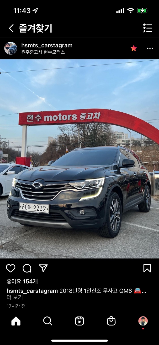 홈피드에서 왼쪽 상단에 인스타그램을 클릭하면 사진과 같이 팔로잉과 즐겨찾기가 보인다.