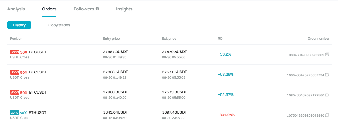 - 보통 트레이더들이 포지션을 오픈할 때 많게는 20~30개 포지션을 동시에 오픈하기 때문에 10달러만 오픈하도록 설정해도 200~300달러를 오픈하게 된다. 그러므로 안정적인 운영을 위해서는 한 명의 트레이더를 팔로우하고, 포지션 진입 시 10달러 오픈 설정, 시드는 1,000~2,000달러를 유지하는 게 좋다.