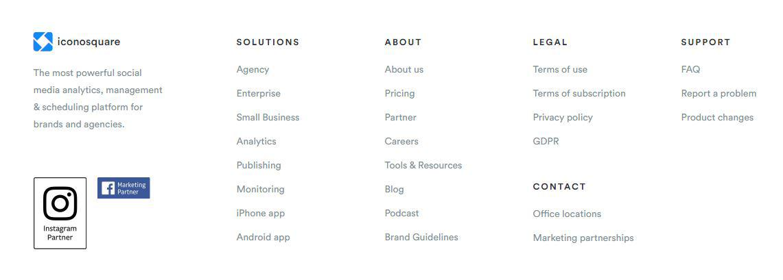 아이코노스퀘어라는 사이트인데 내 인스타그램에 대한 많은 양의 분석 자료를 제공하며, 댓글 관리, 경쟁 계정 활동 추적 등 여러 기능이 있지만 오늘은 포스팅 예약 기능만 살펴보겠다. 혹시 매크로를 걱정하는 분이 있을까봐 다시 한 번 말씀드리면, 이 사이트는 페이스북, 인스타그램과 공식 파트너십을 맺은 사이트로 Facebook Business 를 재가공해서 만든 데이터와 기능들이므로 100% 안전하다. 홈페이지 좌측 하단에 보면 공식 파트너십 마크를 확인할 수 있다.