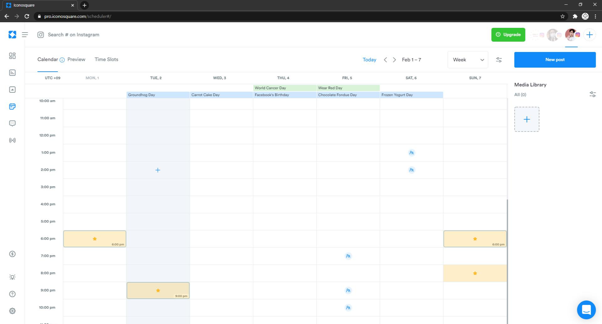 금요일과 토요일에 보면 사람 두 명의 형체가 그려진 파란색 아이콘이 보일 것이다. (안 보이면 Ctrl 누르고 마우스 휠을 돌려라) 저 아이콘은 내 팔로워들이 많이 활동하는 시간대를 의미한다. 해당 시간대에 내 팔로워들이 가장 많이 접속해 있으니 그 때 포스팅을 해도 괜찮다는 의미다. 노란색과 파란색 아이콘 둘다 포스팅하면서 내 게시물의 포포먼스를 체크해보고 나에게 맞는 황금 시간대를 찾자.